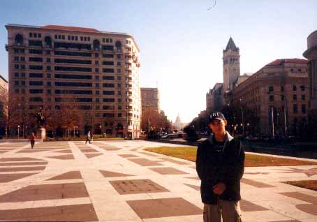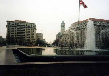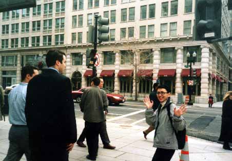 Но первым делом, что мы сделали, заселившись в гостинеце “Вашингтон”, пошли осматривать окрестности. Сразу за углом отеля увидели вот этот замечательный городской пейзаж. Попросили тетушку сфотографировать нас на этом фоне...