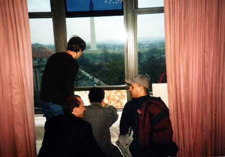 Hotel. Yakutian Diaspora. Dec,1, 2001: From left to right: I, Vera Solovjeva, Slava, Diana and Katya Alekseeva. All of them, except Vera, study in the US under the auspices of IREX.